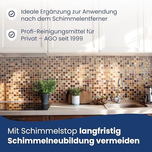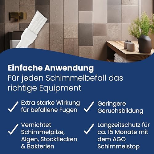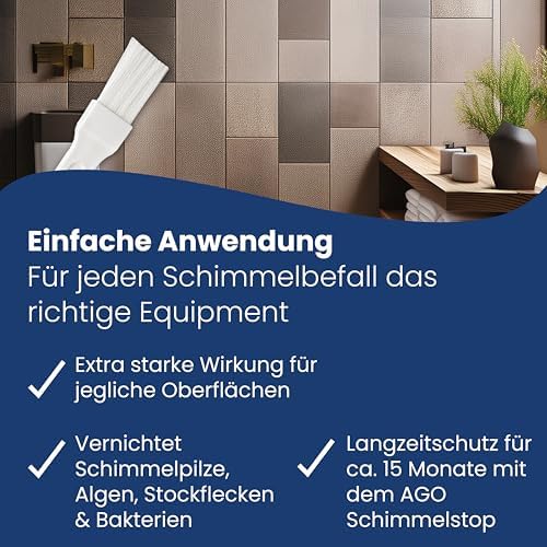 Für einen längeren Schutz gegen Schimmel empfehlen wir die Verwendung von AGO Schimmelstop. Dieses Produkt wirkt bis zu 15-18 Monate gegen Schimmelwachstum und bietet Ihnen die nötige Sicherheit, dass Ihr Zuhause auch langfristig frei von Schimmel bleibt.