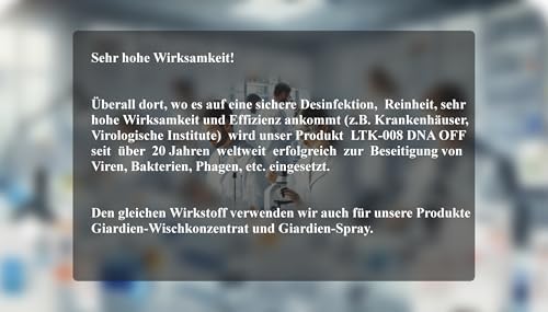 • Effiziente Einwirkungsdauer: Nur 5-10 Minuten, um eine gründliche Desinfektion zu gewährleisten.