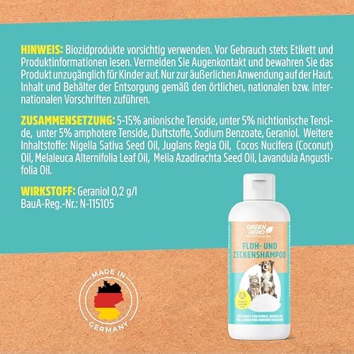 Green Hero Floh- und Zeckenshampoo für Hunde und Katzen 250 ml | Effektiver Schutz vor Schädlingen | Ohne Silikone und PGreen Hero Floh- und Zeckenshampoo für Hunde und Katzen 250 ml | Effektiver Schutz vor Schädlingen | Ohne Silikone und P