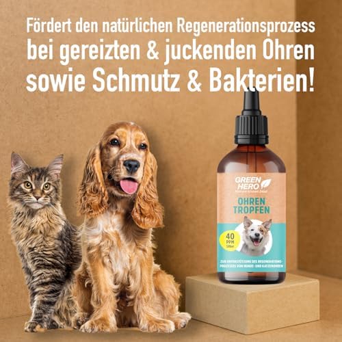 Die einzigartigen Inhaltsstoffe fördern den natürlichen Regenerationsprozess der Ohren und helfen, Schmutz und Bakterien zu reduzieren. Ideal für Hunde und Katzen, die unter Reizungen leiden, leisten unsere Tropfen einen wertvollen Beitrag zur gesunden Ohrpflege.