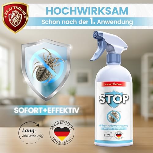 • Effektive Milbenbekämpfung: KraftKönig Premium Milbenspray bekämpft Hausstaubmilben und Bettmilben leistungsstark für Allergiker.