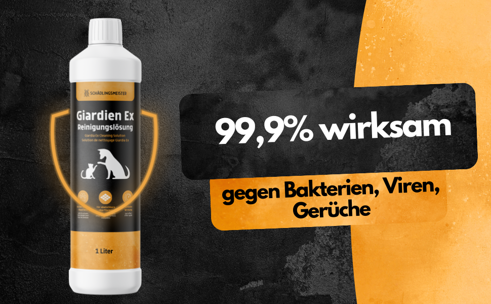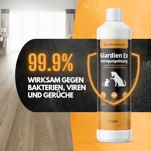 Mit einer Wirksamkeit von 99,9% gegen Viren, Bakterien und Pilze sichert die Giardien Ex Lösung eine hygienische Umgebung. Ideal für Haushalte mit Tieren und ausgedehnten Hygieneanforderungen, sorgt dieses Produkt dafür, dass Ihr Wohnraum sauber und keimfrei bleibt.