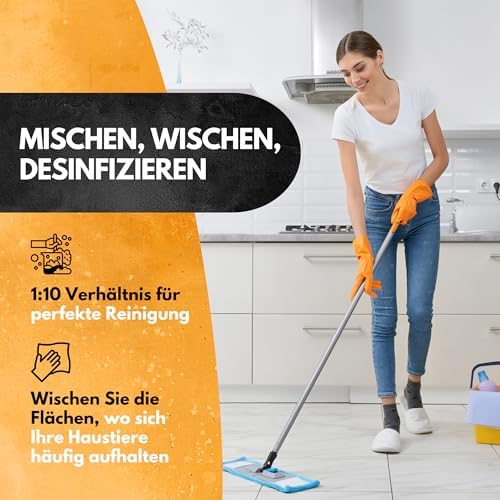 Besonders empfohlen für Haushalte mit Katzen und Hunden! Die Giardien Ex Lösung reinigt gründlich und schützt Böden sowie Oberflächen, ohne empfindliche Tiernasen zu belasten. Schaffen Sie eine gesunde Lebensumgebung für Ihre Haustiere und genießen Sie ihre Gesellschaft in einem sauberen Zuhause.