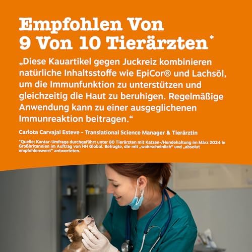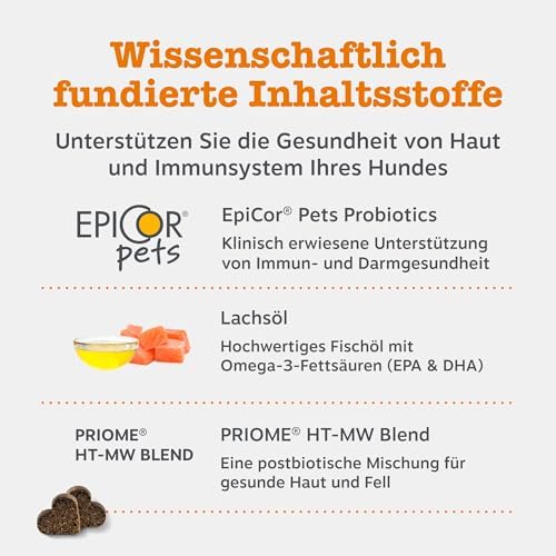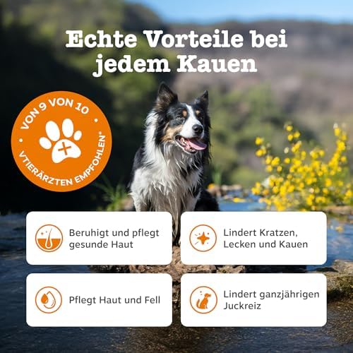 Die speziell formulierten Chews sind nicht nur köstlich, sondern helfen auch effektiv dabei, juckende Haut zu beruhigen und Kratzer zu verhindern. Diese täglichen Nahrungsergänzungsmittel in Form von Kaustreifen fördern die allgemeine Hautgesundheit und sind die perfekte Lösung für Hunde, die unter allergischen Reaktionen leiden. Dabei unterstützen sie das Wohlbefinden Ihres Hundes und verbessern seine Lebensqualität.