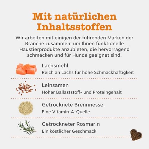 Dank unserer leckeren Kauprodukte müssen Sie sich nicht mit bitteren Allergietabletten herumschlagen. Diese Chews stellen sicher, dass Ihr Hund nicht nur die nötige Linderung bekommt, sondern dies auch auf schmackhafte Weise. Wenn übermäßiges Kratzen und Lecken das Leben Ihres Hundes erschweren, können unsere Snacks dazu beitragen, den Juckreiz zu lindern und eine normale Hautgesundheit zu fördern.